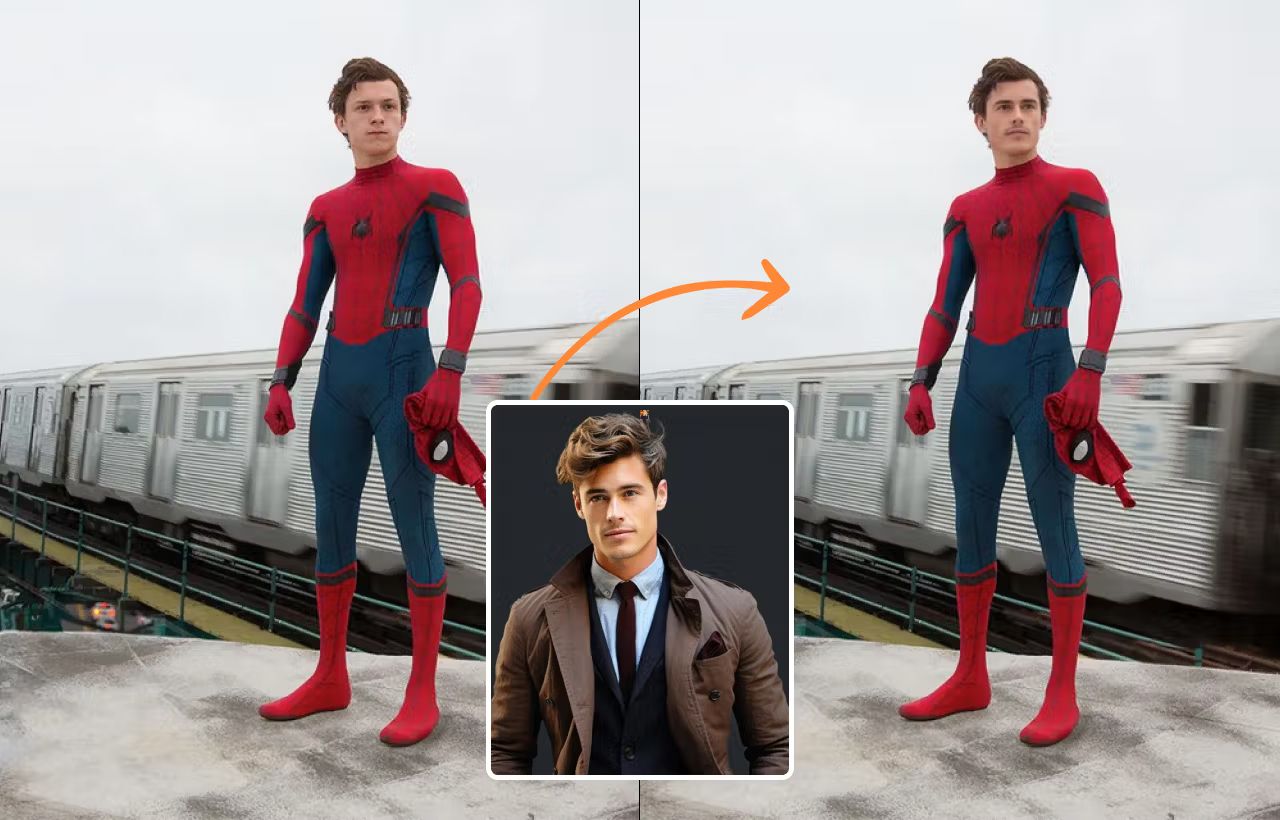Face Replacement: AI replaces the target face with the source face while blending skin tones, lighting, and textures.